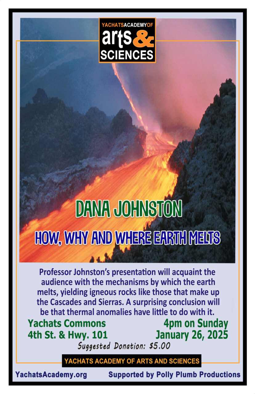YACHATS ACADEMY OF arts & SCIENCES Professor Johnston’s presentation will acquaint the audience with the mechanisms by which the earth
